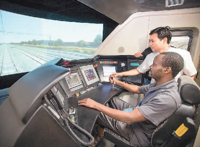 日前,來自泰國、斯里蘭卡、老撾等13個國家的63名鐵路管理人員來到武漢高鐵訓練段進行參訪交流活動。在“一帶一路”背景下,2015年開始武漢高鐵訓練段已舉辦了泰國、老撾等14批涉外鐵路技能培訓班,培訓涉外學員400余人次。圖為來自肯尼亞的賈斯特斯·卡洛·姆文加在高鐵模擬駕駛倉內體驗實際操作。 新華社記者 肖藝九攝