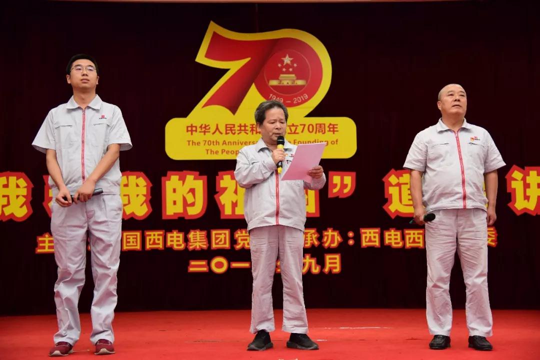 活動中,展播了各單位《我和我的祖國》系列視頻,與會同志同唱了愛國歌曲《五星紅旗迎風飄揚》,聆聽了詩歌朗誦《我的祖國》和西電故事《爭做頂梁柱,騰飛中國龍》,欣賞了展現工人力量的舞蹈表演《奮進新時代》,三位“建國”同志結合個人成長、企業變遷、祖國發展談了自己的切身感悟,西電西變、西開有限兩家單位分別作了關于道德講堂的經驗交流,與會人員共同欣賞了歌伴舞《我和我的祖國》?,F場活動氣氛熱烈,大家情緒高昂,故事生動感人,歌聲優美嘹亮。